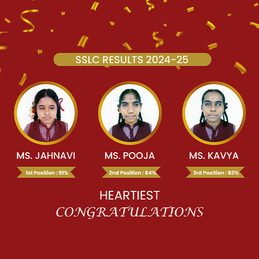 Congratulations to the SSLC Batch of 2023-24 at Ranga Rao Memorial School for Differently Abled for achieving a remarkable 100% result in the SSLC examinations. Among the 12 students, Kumari stands out as the topper with an impressive score of 83%. Additionally, Abhinaya, Deepu, Geetha, Kusuma, Sahana, and Suchithra have secured B+ grades, while Chandrika,...